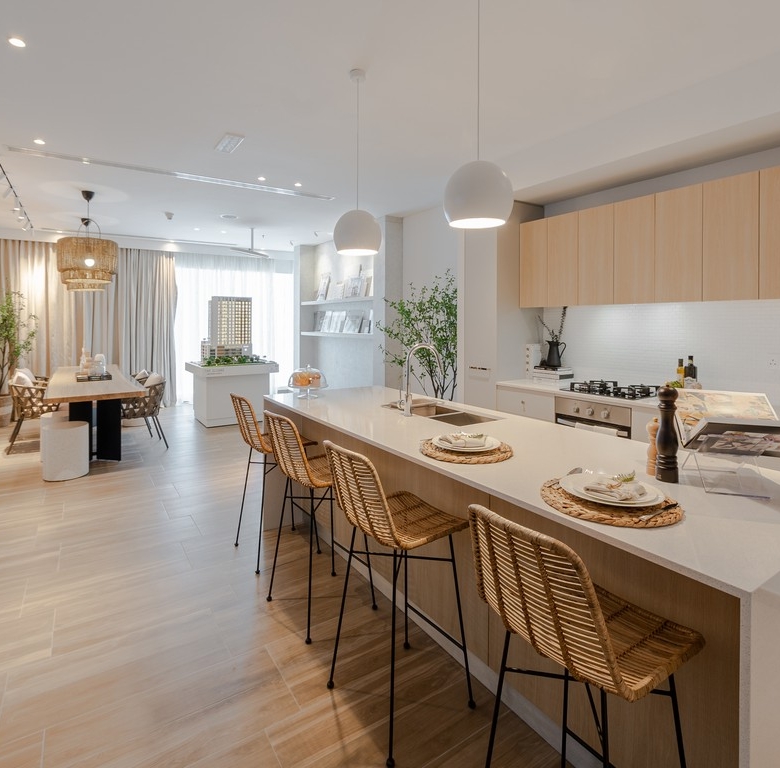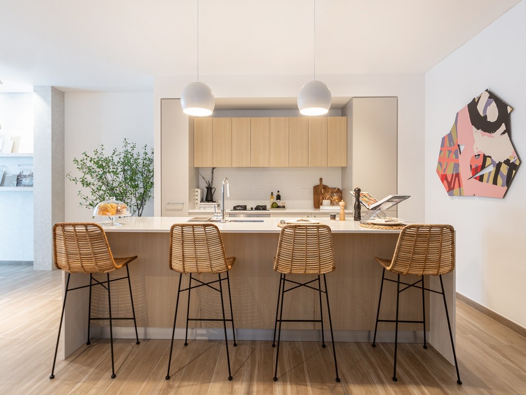 - Bedrooms: Generous layouts with crisp white walls, warm wood accents, and large balconies for a serene retreat
