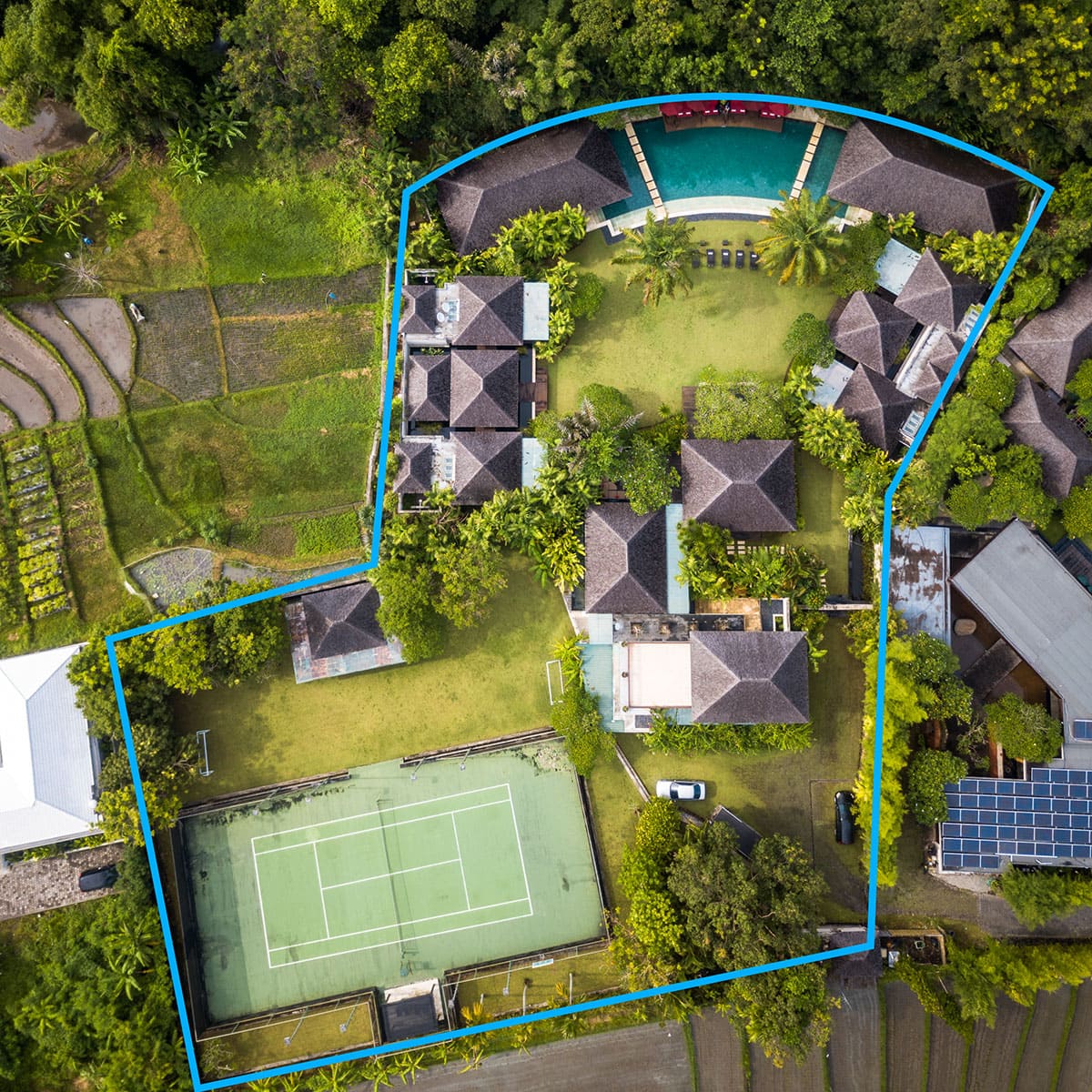Designed for the extravagant family in mind, this stunning contemporary translation of traditional Bali style of living offers multiple living areas and spacious pavilions for each of the six bedroom suites.