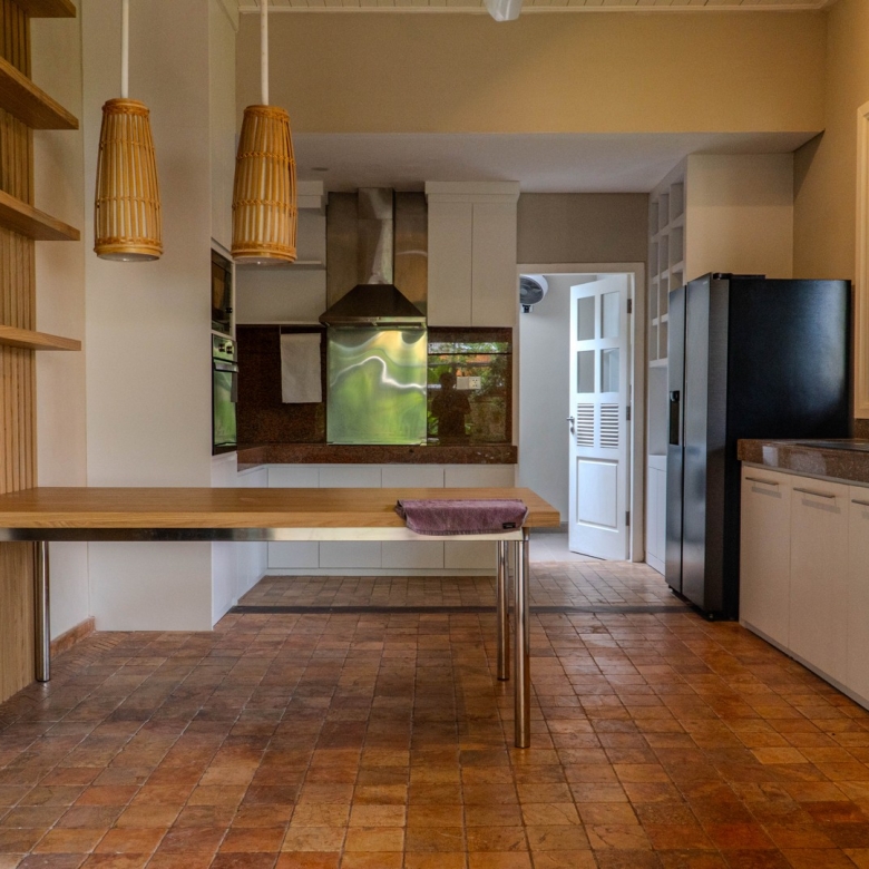 The villa spans two floors and covers 320 sqm of enclosed living space, blending traditional elements with clean contemporary lines. Inside, four bedrooms and four bathrooms are paired with a closed living room, standard kitchen, and dining area that flow naturally together. Unfurnished and move-in ready, it’s a blank canvas with all the hard work already done—from the plumbing and finishes to the rain showers and pool.