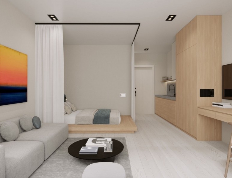 The project offers 25 boutique studios nestled in the heart of Limassol’s historical center — a vibrant hub of rich cultural heritage, filled with shops and restaurants that appeal to both tourists and young professionals. Thanks to the Limassol Municipality’s proactive efforts to restore and invest in metropolitan development initiatives, the area is continuously evolving, offering stable and promising returns for investors. The fourth-floor roof garden offers all the facilities you need for relaxation during your stay, including an overflow swimming pool with a sunbathing area, a barbecue, and an outdoor cinema wall. For fitness enthusiasts, a fully equipped gym is available all year round.