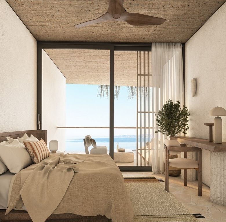 Spanning from 89–196 sqm of thoughtfully designed living space, each residence is managed by 1 Hotels & Homes, ensuring exceptional hospitality and full service. Expect floor-to-ceiling windows, expansive balconies, and private pools in select units—ideal for enjoying Crete’s 300 days of sunshine. Crafted with textured stone, rich wood, and artisan detail, the interiors open to spacious outdoor terraces, creating a seamless indoor-outdoor lifestyle. Built to the highest environmental standards (BREEAM & LEED), the Hilltop Residences are more than homes—they are an invitation to live beautifully, naturally, and sustainably at the top of the world.