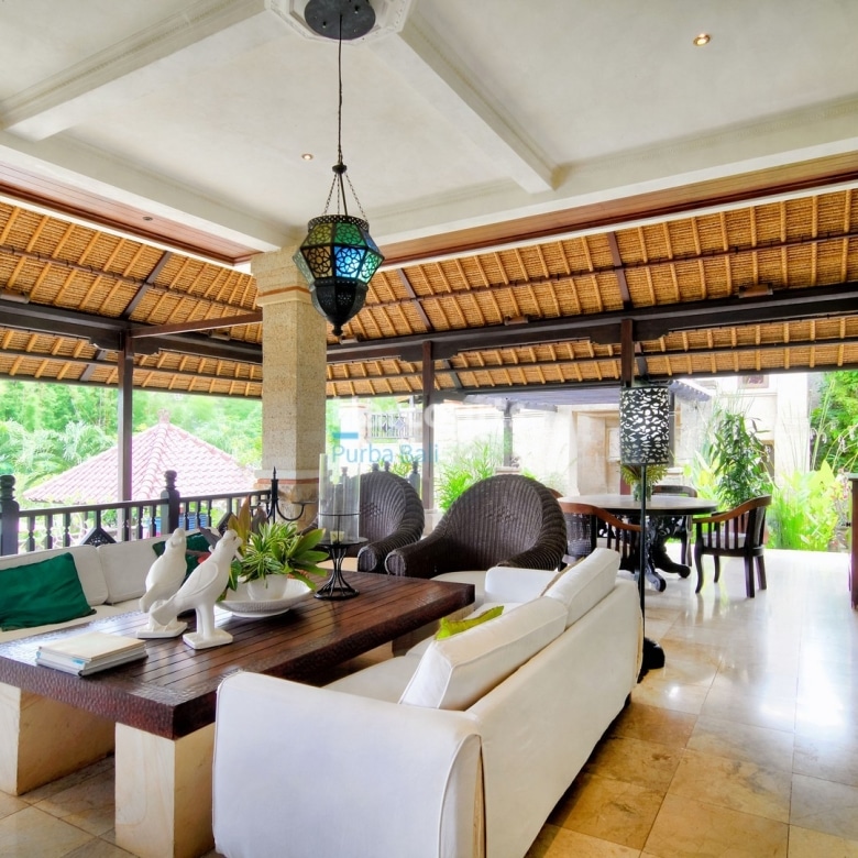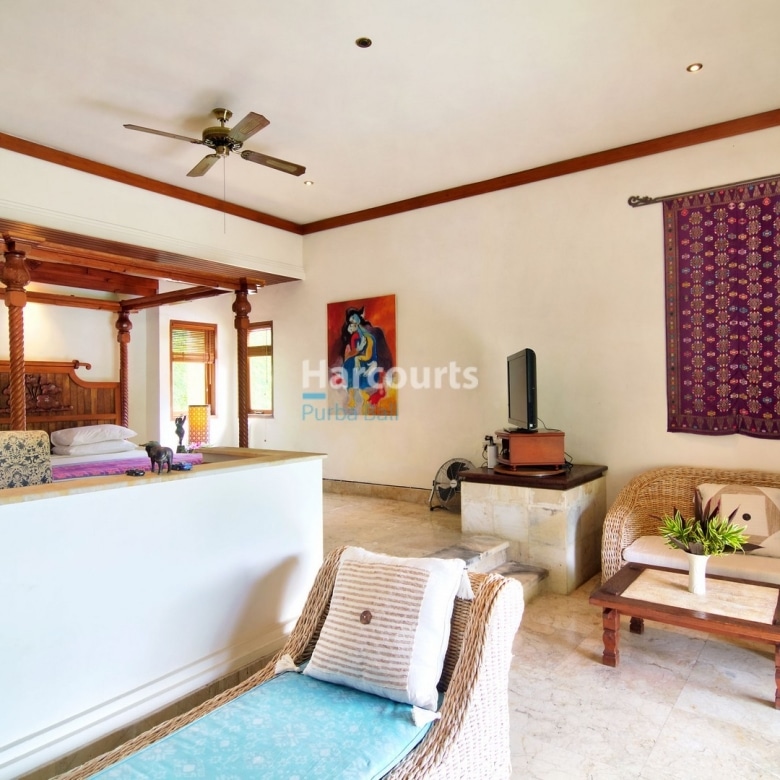 As you enter the estate, you’re greeted by lush tropical gardens and a sense of tranquillity that permeates the air. The villa itself, boasting an impressive build of 789 square meters, exudes timeless charm with its traditional Balinese architecture.