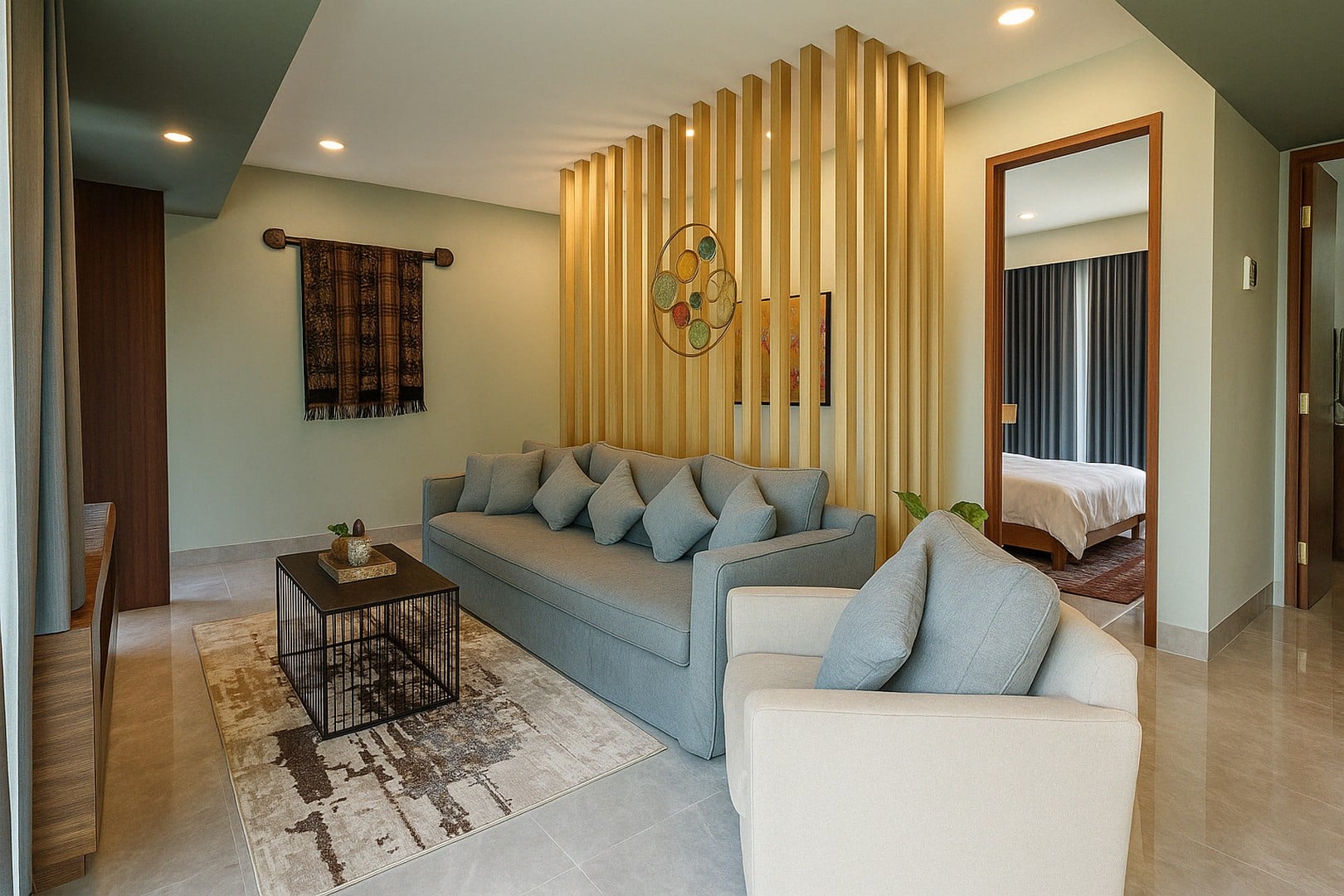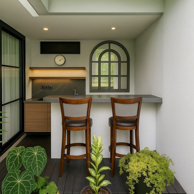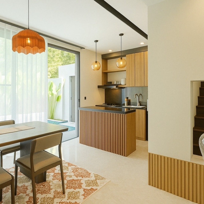 Blending warm brown wood tones, soft cream palettes, and contemporary grey accents, the home delivers an inviting atmosphere throughout. The enclosed kitchen and dining area ensure comfortable day-to-day living, while a rooftop lounge provides a relaxing space to unwind or entertain. Each of the three bedrooms features its own bathroom, with rain showers and thoughtfully chosen finishes. A private rectangular pool, on-site parking, and a clean, modern aesthetic complete the offering.