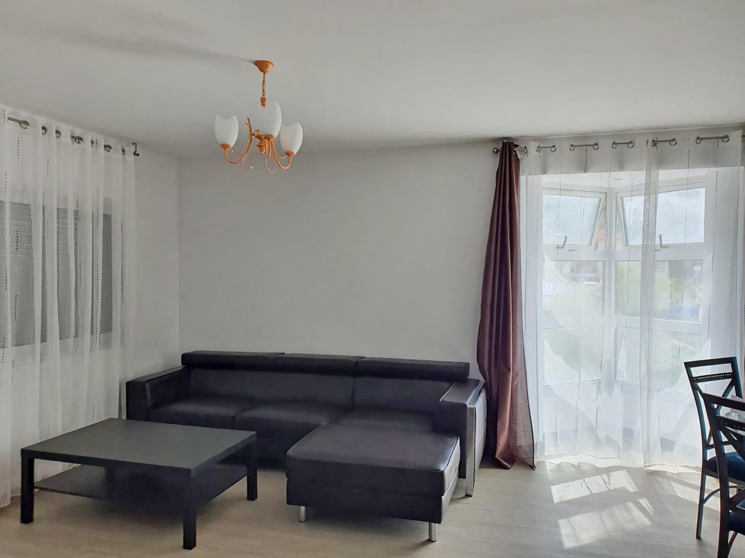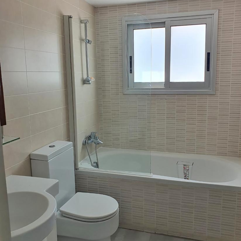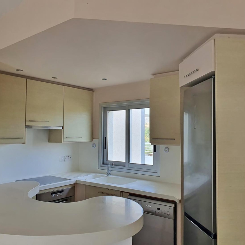 This spacious two bedroom apartment with Title deed is located in a quiet dead end street in Agia Paraskevi, Germasogeia, Limassol, close to shops, pharmacies, coffee shops, and a swimming pool. It features a bright living room with a covered veranda, an open plan kitchen with dining area, two bedrooms with balconies, and a modern bathroom. The apartment includes new A/C units, a private storage room, covered parking, and brand new furniture and appliances.