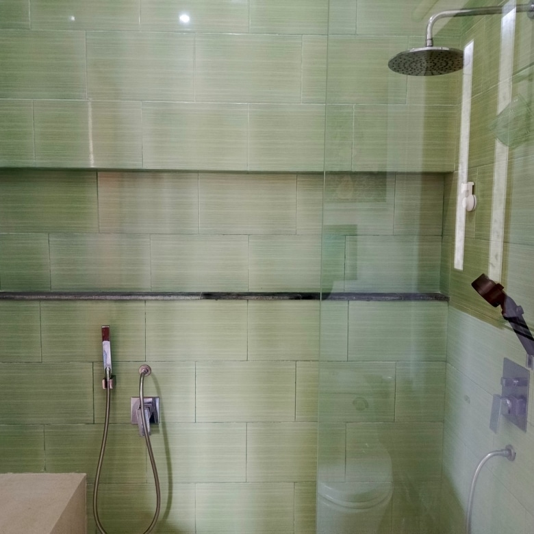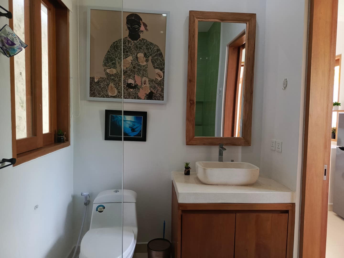 Designed in a beachside tropical style, the current layout includes a spacious one-bedroom with two desks, perfect for remote work. The studio window offers lovely ocean views, while the bedroom opens to a lush tropical garden, providing a serene and private escape. The rain shower enhances the spa-like atmosphere, making it an ideal vacation or retreat home.