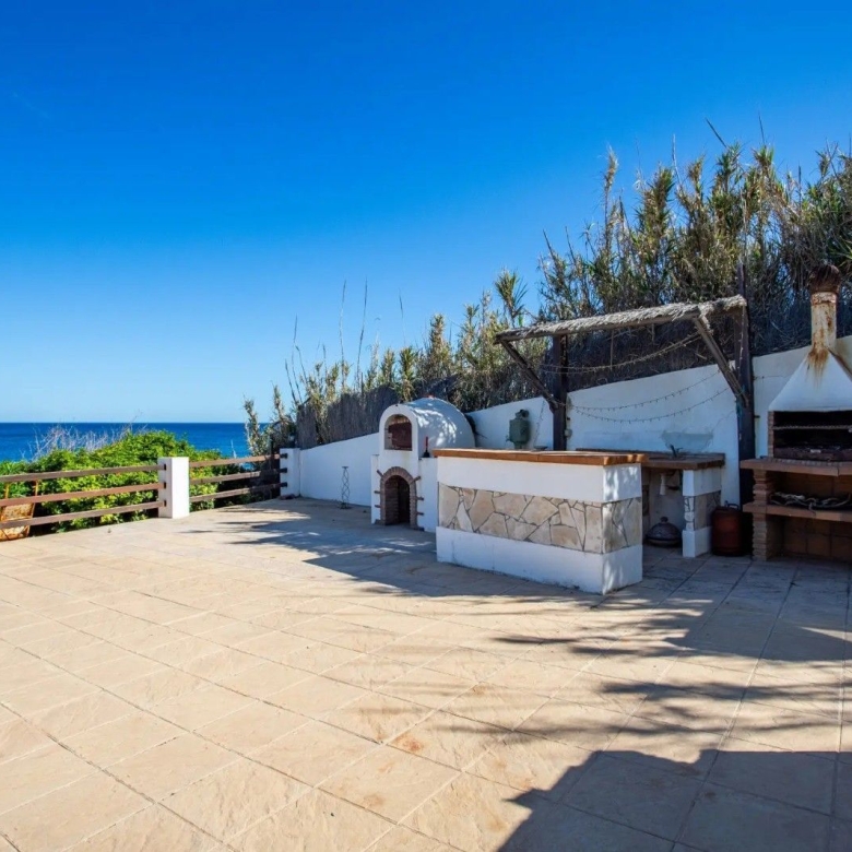 This property is located to the west of Estepona port and conveniently located close to shops and just a stones throw from the beach. The property has 2 double bedrooms which share the family bathroom, semi open kitchen and living room which open onto the balcony, from which you have great sea views. Off the kitchen is a small courtyard style terrace with stairs up to the roof terrace which is very large and here also is another room currently used as a storage room but can be converted into another room with access made from in the living room.