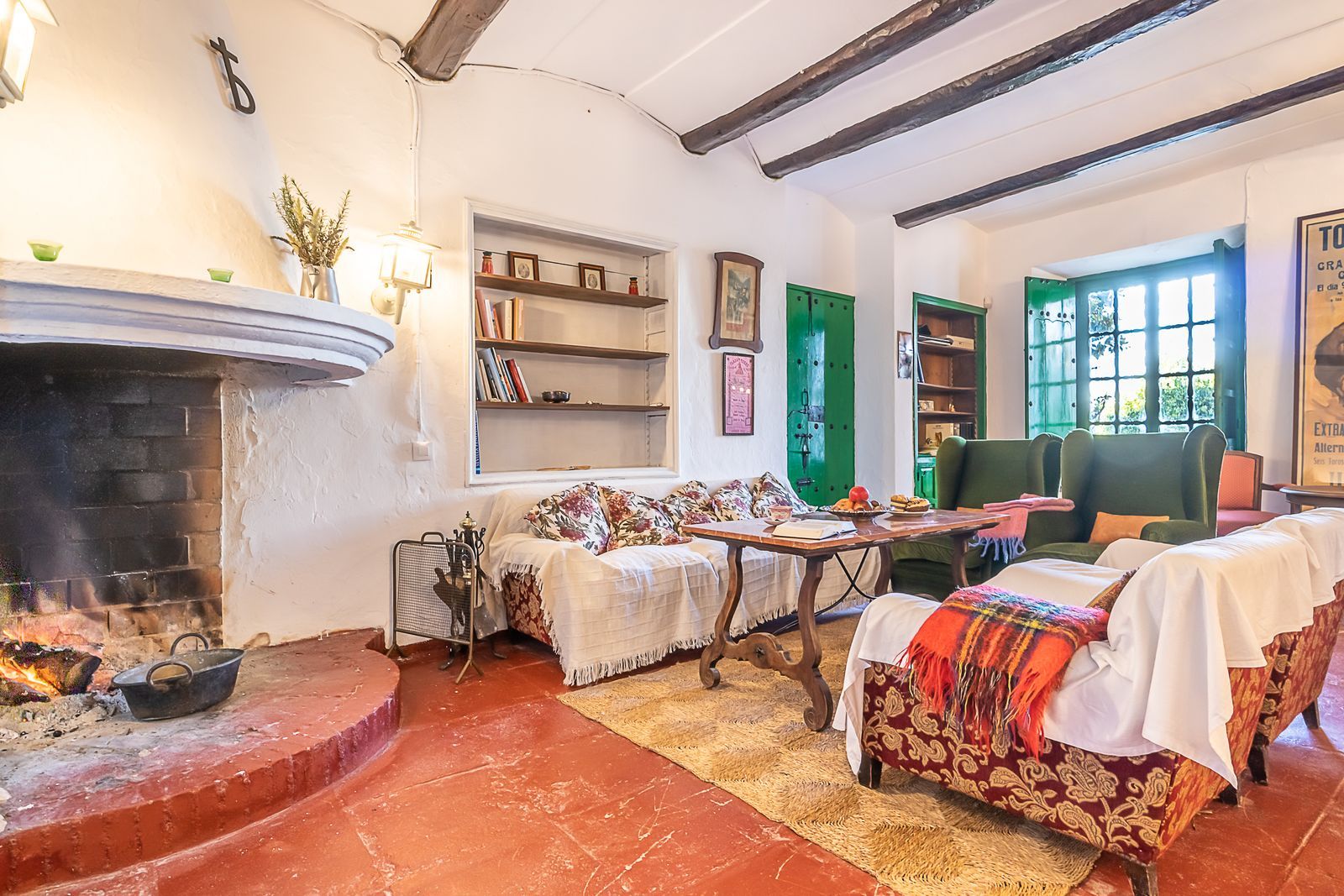 Entrance hall, very spacious living-dining room on the right, with a fireplace with a turbo fireplace, and access to a beautiful terrace with views of the development and urban areas.