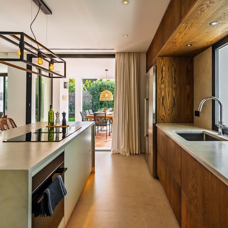 Kitchen on the left, in perfect condition, with a breakfast area and separate laundry area.