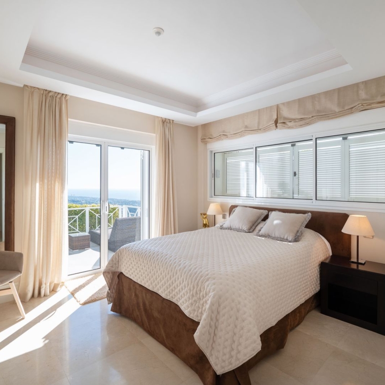 The master bedroom comes with an en-suite bathroom, built in wardrobes, hot and cold air conditioning and direct access to the terrace.