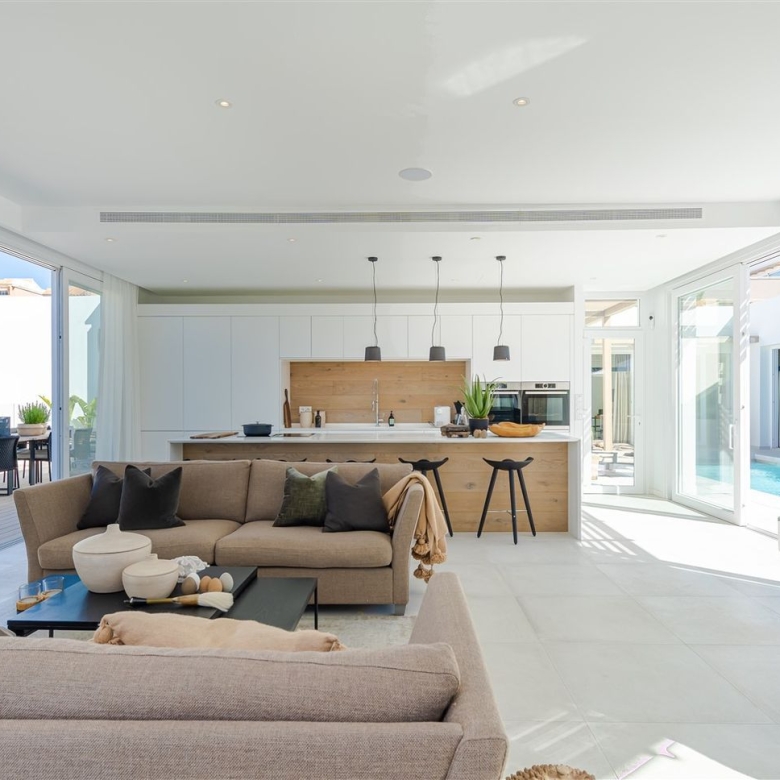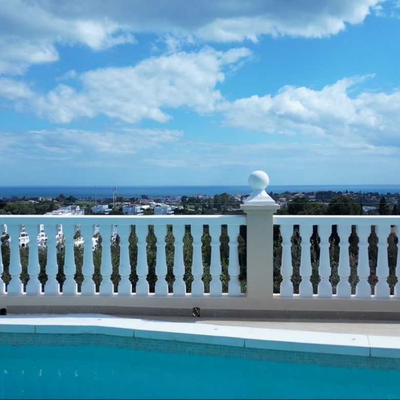 Beautiful two-bedroom penthouse with terrace and solarium, both with sea views. Downstairs has entrance with wardrobe, kitchen with laundry room, two large bedrooms with fitted wardrobes, living room, terrace with beautiful sea views. On the upper floor there is a large solarium-style terrace. The property has a large storage room and garage space included in the price.