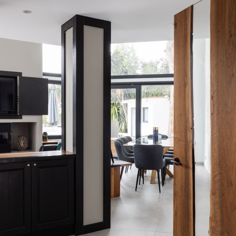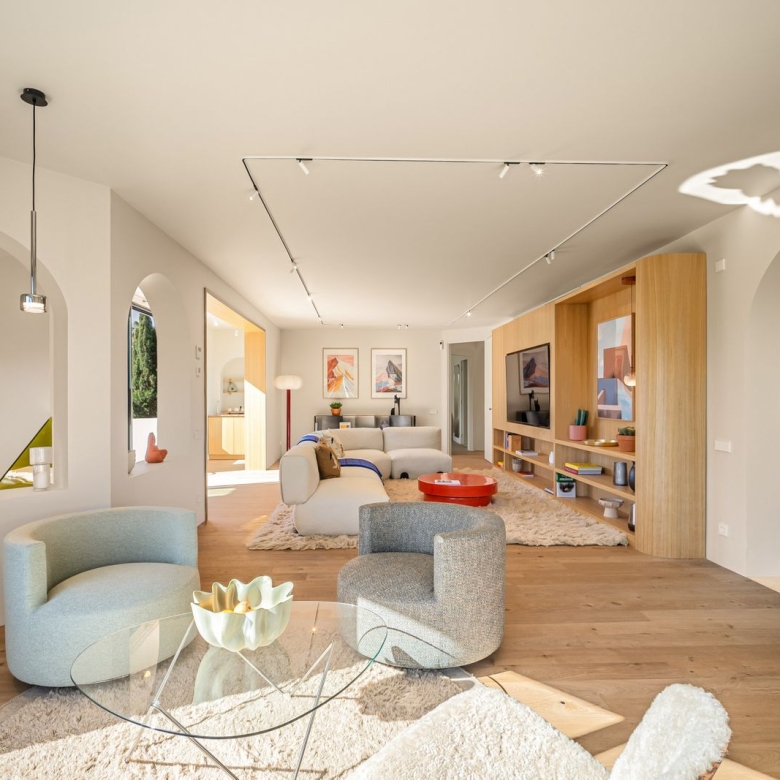 The layout is classic and functional, with a separate, fully equipped kitchen that offers a private space for cooking. The living room is bright and inviting with direct access to one of the two terraces, perfect for relaxing in the sun. The second terrace is accessed from one of the bedrooms and offers a more private spot for quiet moments.
