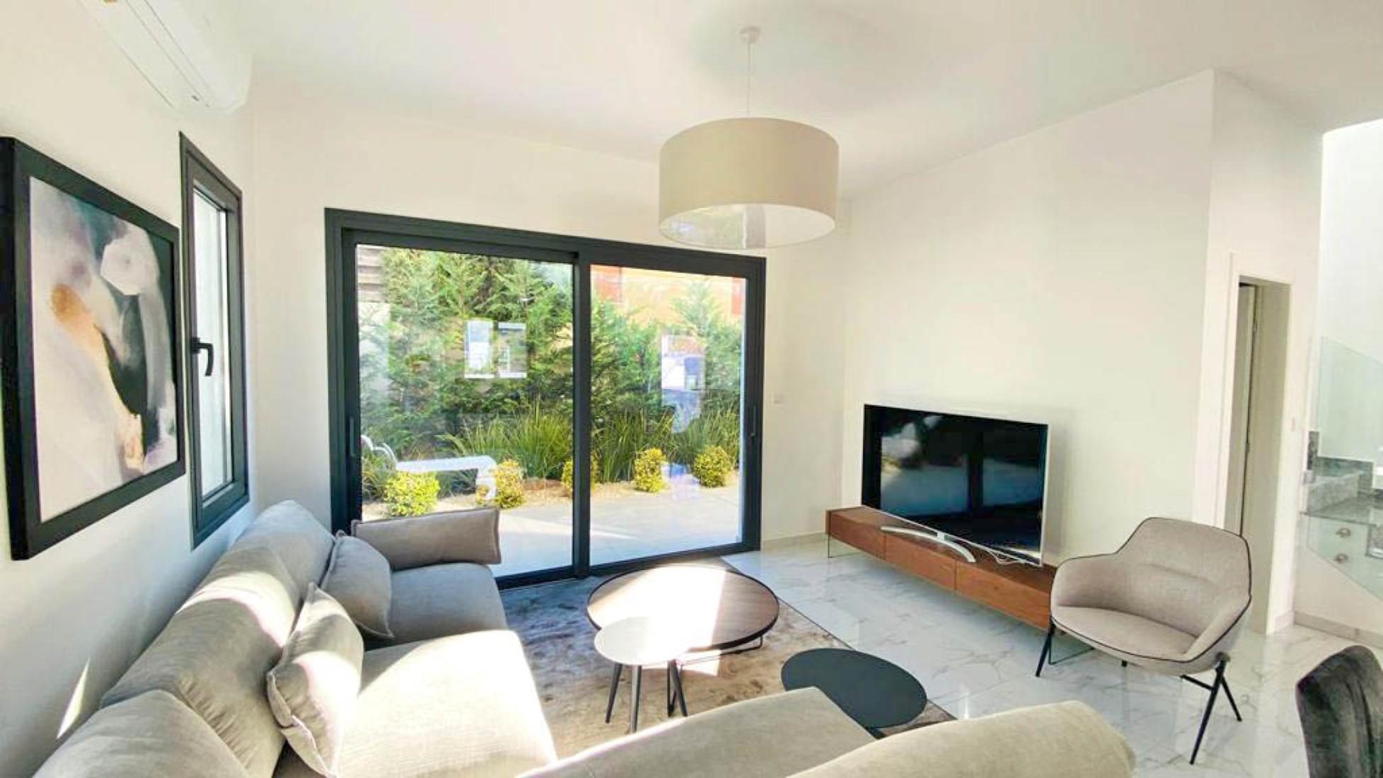 Beautiful townhouse completed in 2022 currently rented for 4000 euros monthly is an excellent investment opportunity. Located in the tourist area of Germasogeia, this cozy home with two spacious beds is fully furnished with all electrical appliances, A/C units, Parking for 2 cars beautiful common swimming pool, a small playground, electric shutters in beds and a Guaranteed ROI 7%. No VAT