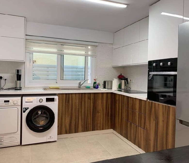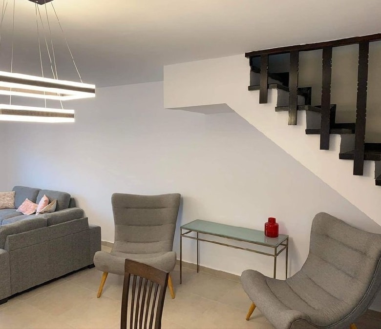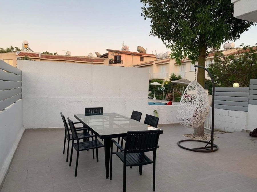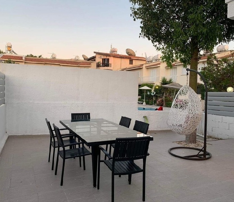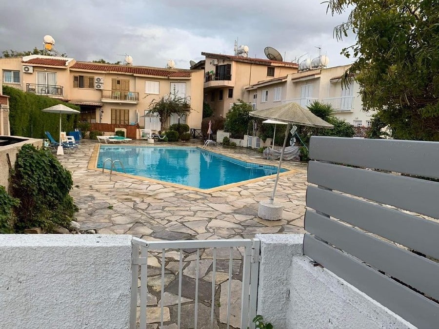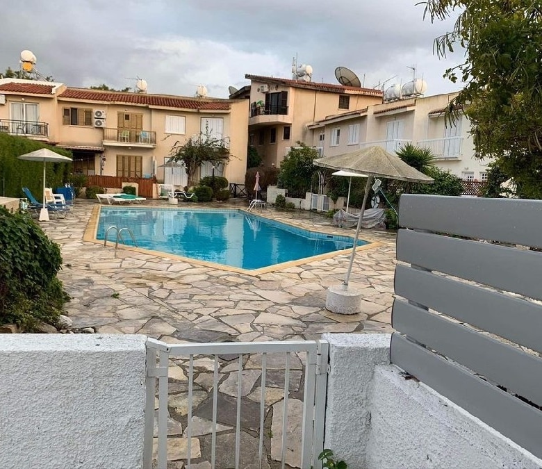 Located in the heart of Kato Paphos, walking distance to the beach, bars, restaurants and amenities. Situated on an established project of townhouses and a communal swimming pool. This property corner townhouse has a beautiful green garden surrounding the 3 sides of the property. Front terrace area. Open plan lounge/ dining area/ kitchen, guest WC. Upstairs there are 3 double bedrooms, full bathroom and the master bedroom has a pool facing balcony and its own toilet.