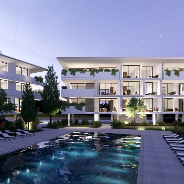 It is an upcoming luxury development project located in Paphos, Cyprus. The development will be constructed on a 9100-square-meter plot of land and will consist of five individual buildings. The project will feature a total of 72 luxury apartments, all of which will be finished to the highest standard. The development will be gated, providing residents with a level of security and exclusivity. Residents will have access to a wide range of luxury amenities, including a spa, gym, lobby, concierge services, and 24-hour security. The project offers a variety of options for residents to relax and unwind, including lounging by the large communal pool with a separate pool for kids and a pool bar, as well as lounge areas. The development also includes green spaces with playgrounds for children and public landscaped areas. Located in a prime location adjacent to the Tombs of the Kings, it is one of the larger residential projects in Paphos. The area surrounding the development offers easy access to essential amenities such as shopping, dining, and transportation. The location and design of the development have been carefully considered to provide residents with top-notch amenities and modern facilities, ensuring a comfortable and luxurious living experience. All these features make this project an ideal choice for those seeking high-end living and a solid investment opportunity.