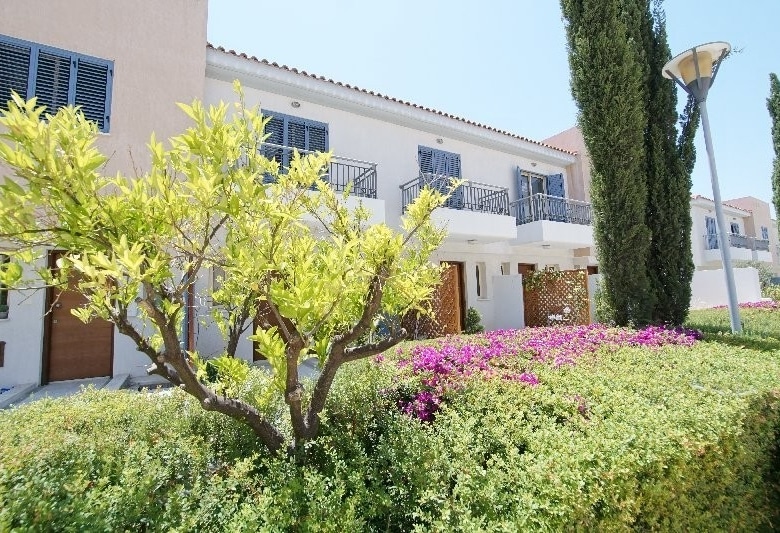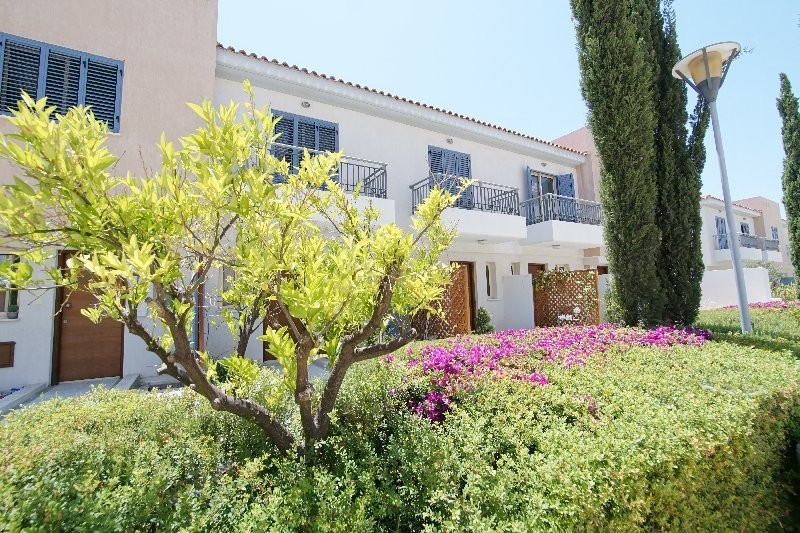 2 bedroom townhouse is located in the most exclusive resort in Pafos, which has been designed to accommodate the comfort, relaxation, and enjoyment of the discerning property owner, offering a wealth of services and facilities unparallel in the area. Positioned within walking distance from the bustling nightlife, shopping arcades, and beaches of Pafos seafront. This spacious townhouse has an open plan living/dining area & a kitchen separated by the breakfast bar. Patio doors off the lounge & dining area lead out to a veranda with access to a beautiful mature garden & surrounding green areas. Also, there is a cloakroom on the ground floor. 2 double bedrooms with fitted wardrobes & a family bathroom located on the upper floor. Both bedrooms have private balconies with views of the garden and green area.