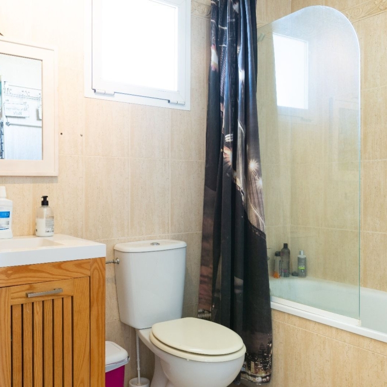 On the first floor you have two spacious en-suite bedrooms. The master has a big bathroom with both bath tub and shower and the bathroom leads on to a nice terrace overlooking the golf.