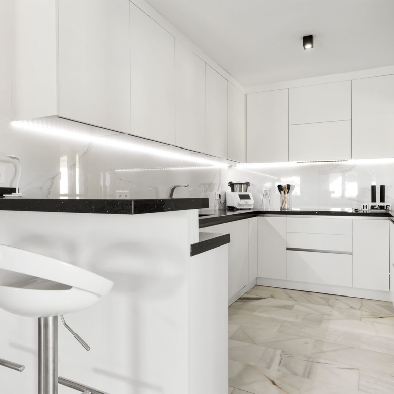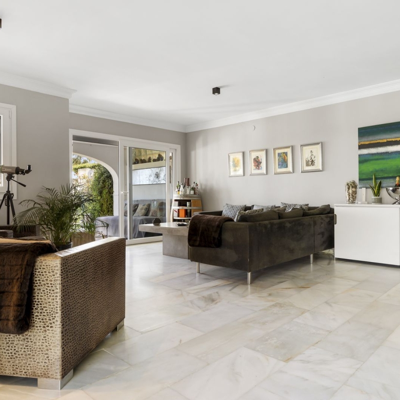 This beautifully renovated corner townhouse with sea views is located in the sought-after urbanisation of Las Gaviotas., in Calahonda. Originally two separate apartments, it has been seamlessly transformed into a single elegant home with a Scandinavian design aesthetic. Premium materials and luxurious finishes create a stylish, contemporary atmosphere full of warmth and character.