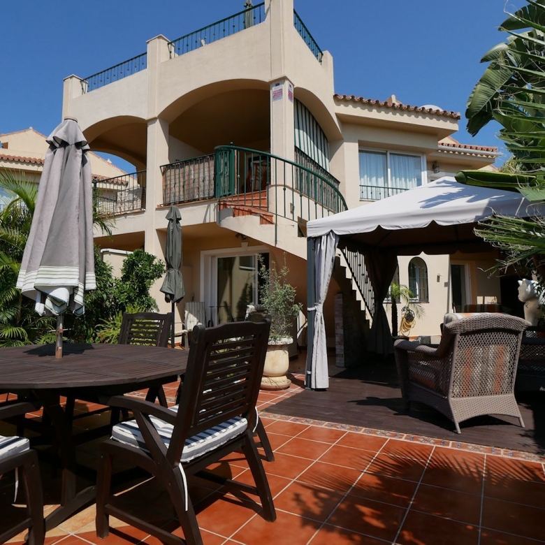 The house has 3 floors. On the ground floor there is a garage for 3 vehicles, with ample storage space and a bathroom. The main floor has 3 very spacious and bright bedrooms, 1 large living room, a full bathroom, kitchen and a small patio. On the top floor there is an open plan kitchen and living room with a fireplace, another bedroom with an en-suite bathroom and a terrace of approximately 80 m².