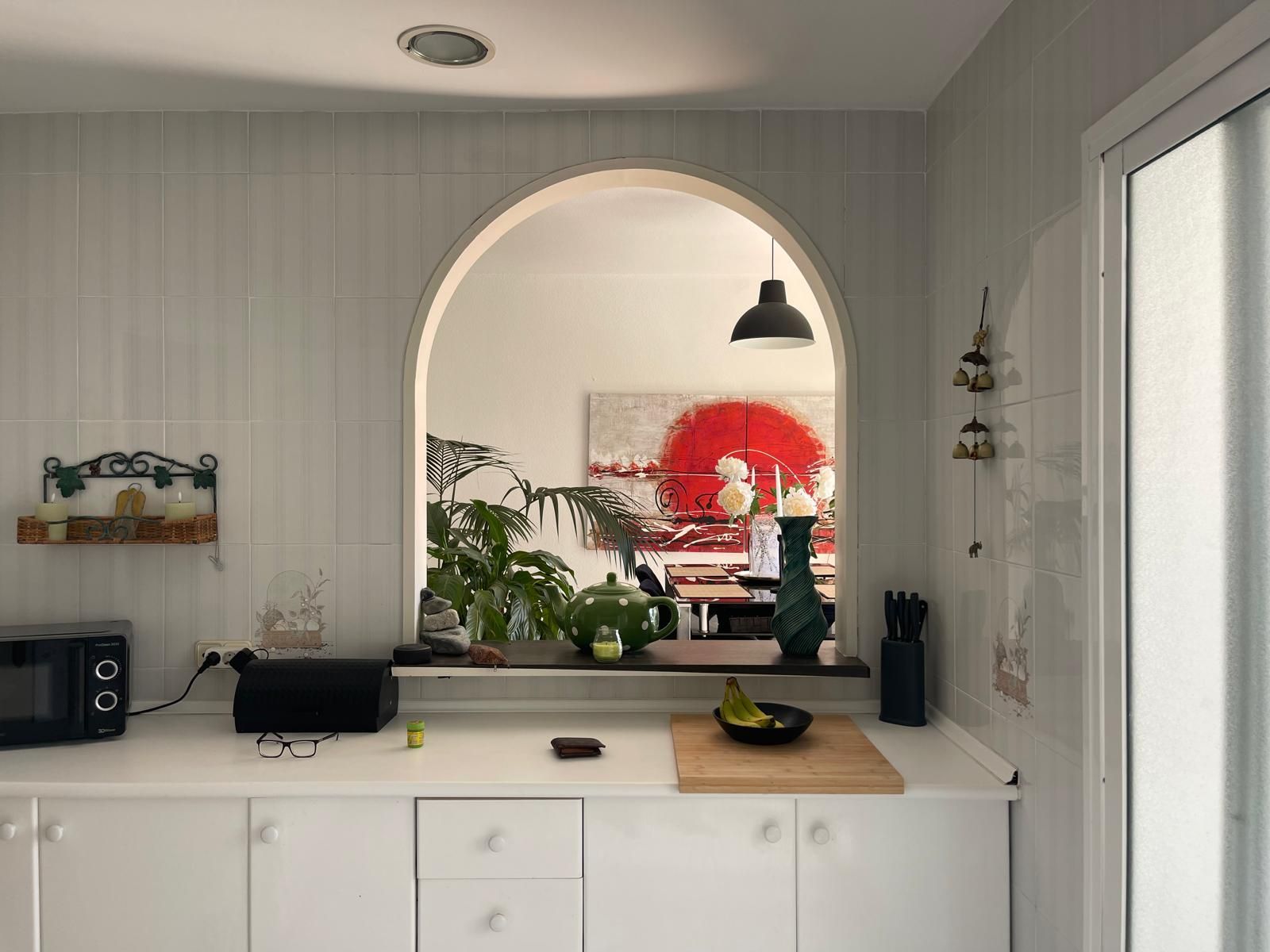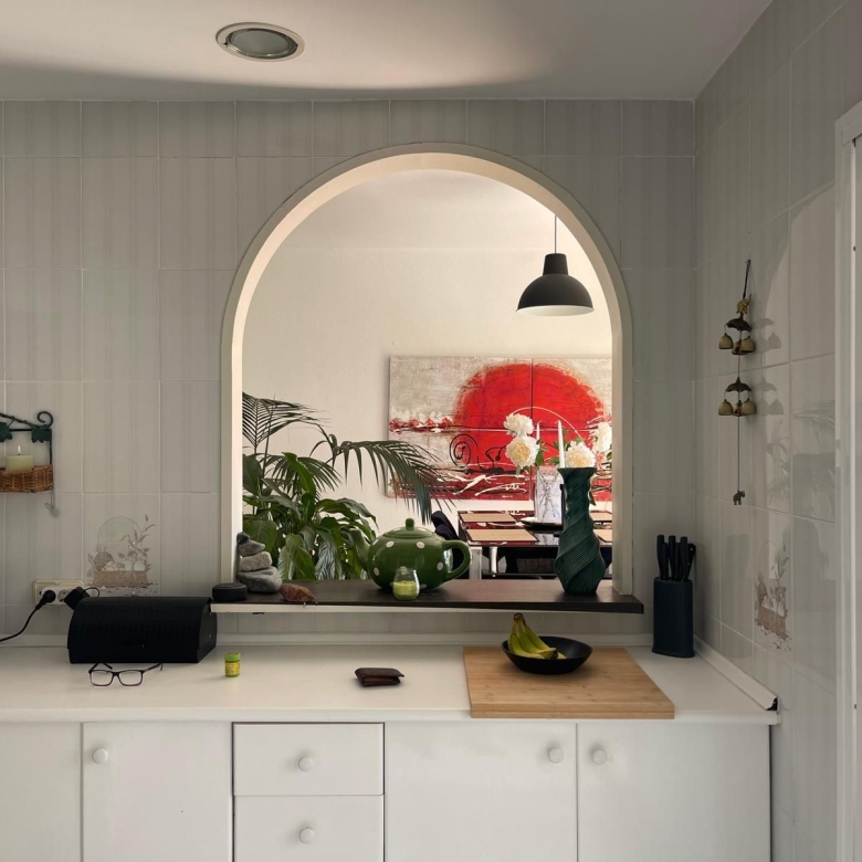 The kitchen is a separate room but there is a sliding door that enables one to tuck the door away and give it more of an open-plan feel. The kitchen is fully fitted and has a double sink above which there is a large window with stunning views across to Casares village. Imagine doing the washing up whilst looking right out to the mystical mountains. Truly breathtaking.