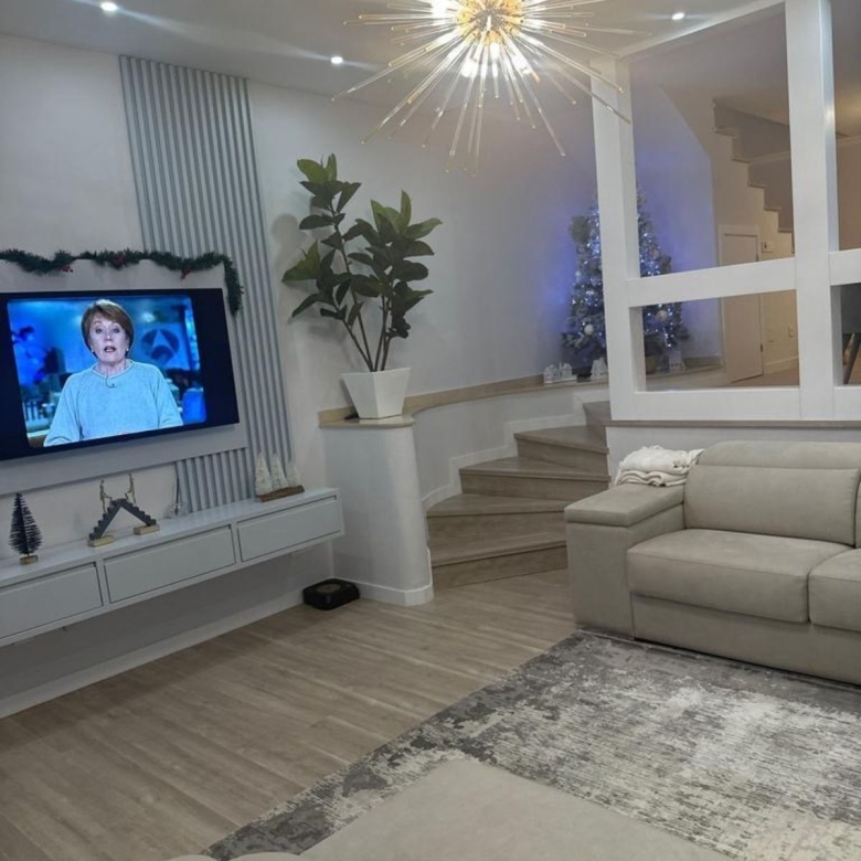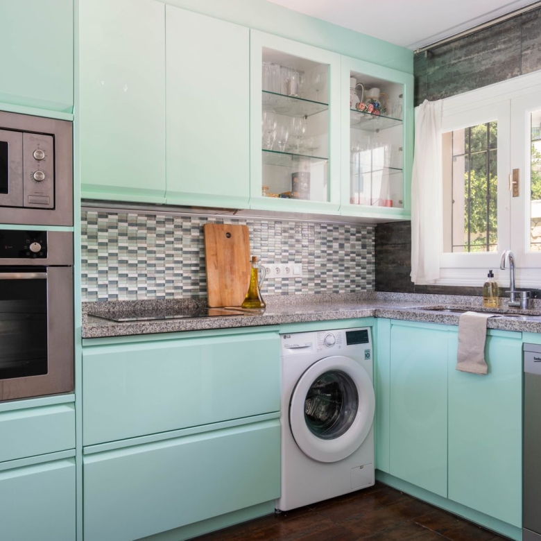On the 1st floor we find the spacious and bright living/dining room and the kitchen.