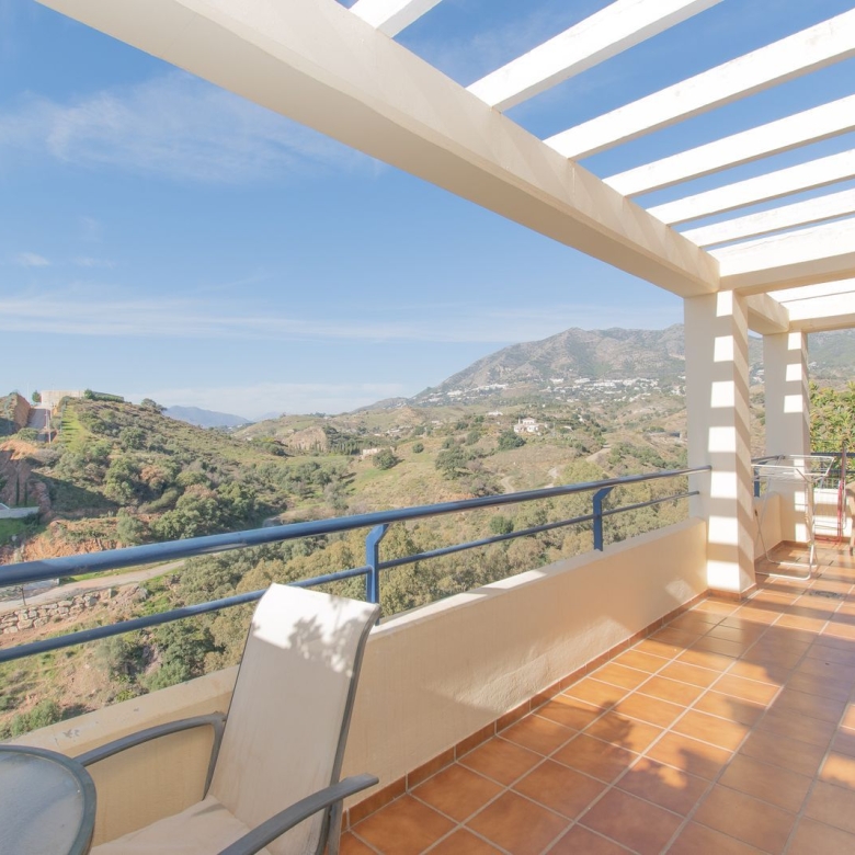 On the 3rd floor, 1 large bedroom, 1 bathroom and 2 terraces, with stunning views to the golf course and mountains.