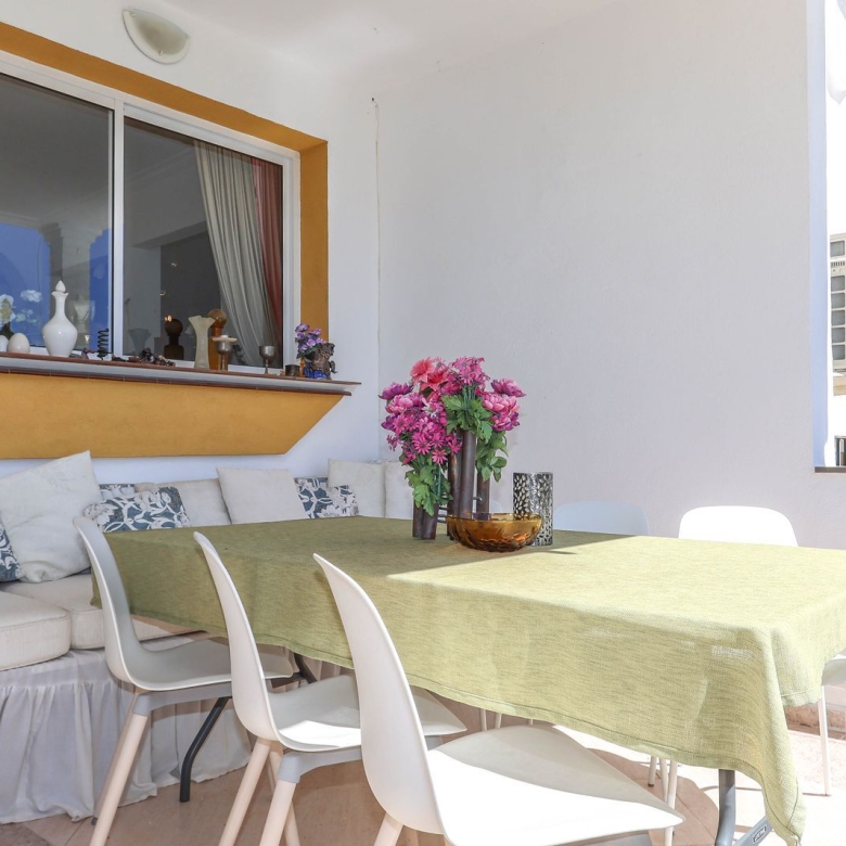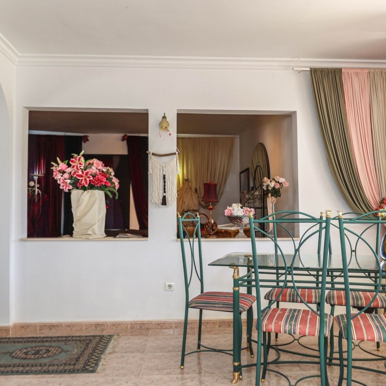 Studio. Downstairs we find a studio that leads to a terrace again with those lovely views. Other owners in the urbanisation have converted this room to an apartment, entertainment room etc. the options are endless. There is also a W/C in the studio.