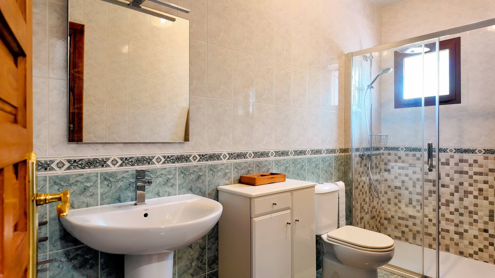Upstairs, the main bedroom features an en-suite bathroom complete with underfloor heating and a Jacuzzi bath. This room opens onto a private terrace with stunning sea views. Two further double bedrooms and a modern family bathroom complete the upper floor.