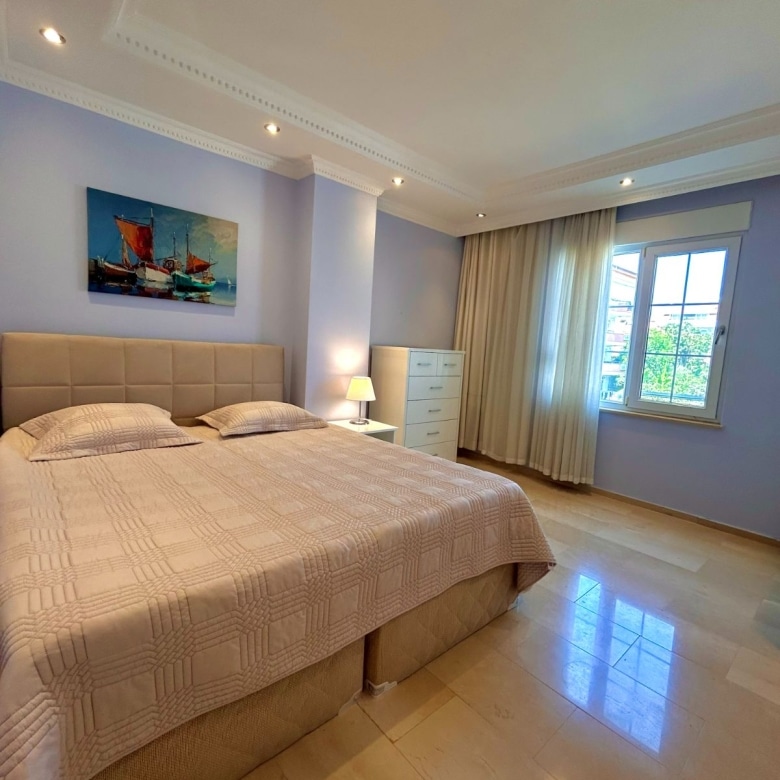 The complex consists of one 5-storey block and a private gated area, as well as a variety of infrastructure. The Mediterranean coast is 1 km away. Cafes, restaurants, a school, Metro Shopping Center, Alanyum, as well as a state hospital are all within walking distance from the house.