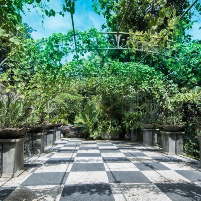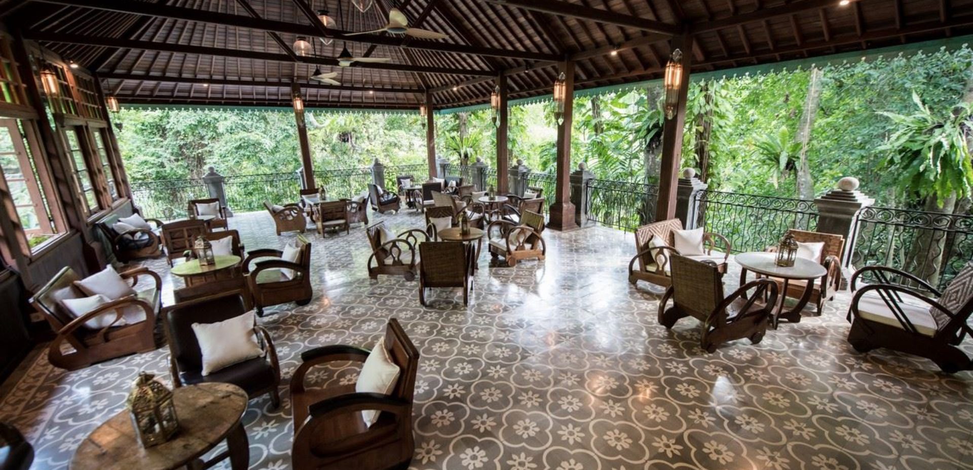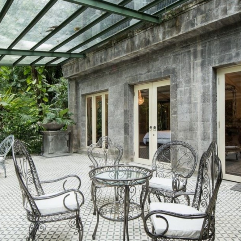 The villa has four spacious bedrooms, all with private ensuites and built-in wardrobes and another room that is being used as an office that can easily be converted. There is the King Suite with its mirror panelled walls, chandeliers, private massage room and bathroom with a Victorian tub, plus another three generously proportioned bedrooms each with centuries-old polished ironwood floors. A lovely new addition is a luxury one bedroom riverside self-contained apartment. Romeo-Juliet balconies and wrought iron fencing look out onto multiple vistas.