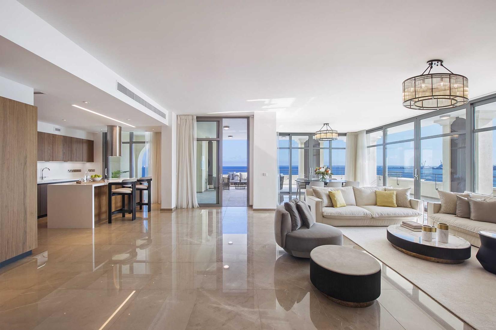 Stunning Contemporary Sea front apartment, part of the most prestigious project that was made in Cyprus ever. A full range of concierge services, reputable yacht brokers and agents, a fully stocked chandlery and a boatyard for light repairs and maintenance are also available within the development grounds. Really magnificent. Hovering over the sunset strip with panoramic city and ocean view from every room, every single point. A dream of a lifetime.