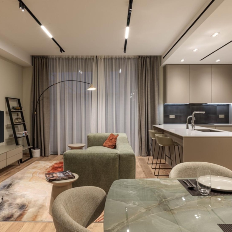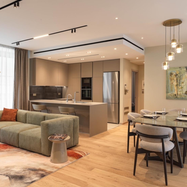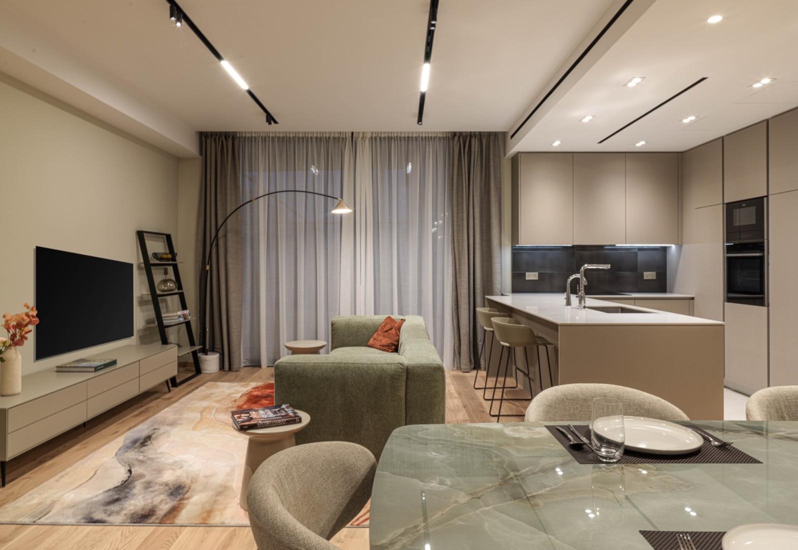 This contemporary and generously sized 2 bedroom apartment is ideally situated in the city center, just a minute’s walk from the scenic Linear River Park and only 10 minutes from the charming Old Town. Nestled among excellent schools, after school facilities, cozy cafés, diverse restaurants, and cultural landmarks, it offers an exceptional lifestyle in a vibrant setting. Residents enjoy access to high end finishes, a shared swimming pool, and a fully equipped gym. With each building uniquely signed by a celebrated artist, the development turns daily living into an inspiring artistic experience.