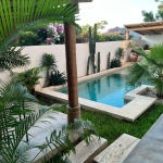 The villa features an open-plan layout with a spacious bedroom (25 m²) — and the option to add a second bedroom or convert to 2 full bathrooms during pre-sale customization. A private 28 m² pool, patio parking space, and optional solar panel installation enhance both comfort and sustainability.