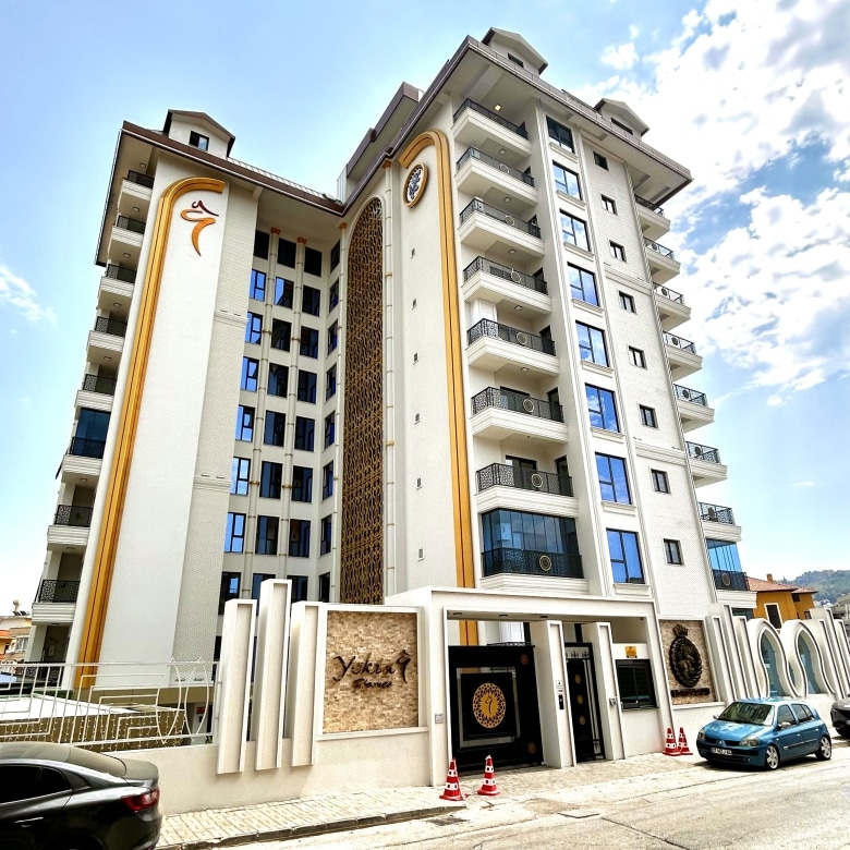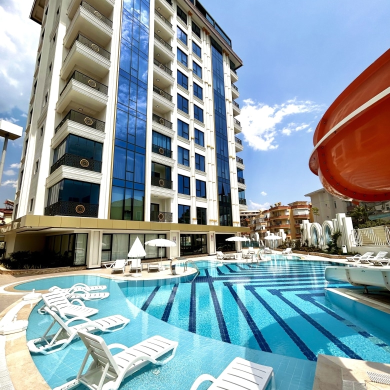 Welcome to your dream coastal home in Alanya! Nestled just 800 meters from the sparkling Mediterranean Sea and a mere 200 meters from the vibrant city center, this stunning 1+1 apartment offers a blend of modern luxury and unbeatable convenience.